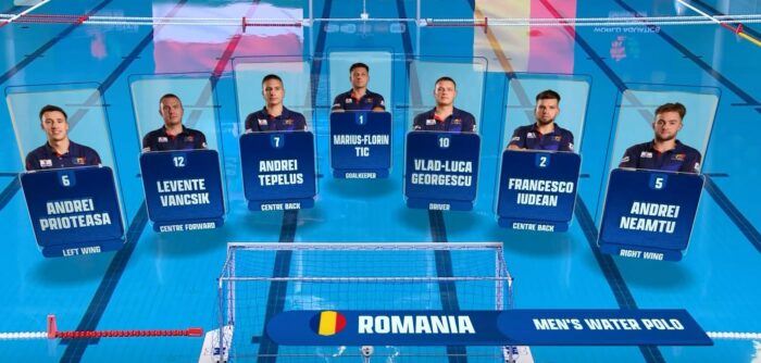 Romania: Marius Țic, Francesco Iudean 1, Matei Luțescu, Andrei Neamțu 3, Andrei Prioteasa 1, Andrei Țepeluș 1, Nicolae Oanță, Alexandru Gheorghe 1, Vlad Georgescu 4, Sebastian Oltean, Levente Vancsik, Mihai Drăgușin, David Belenyesi, David Bota. Antrenor: Bogdan Rath